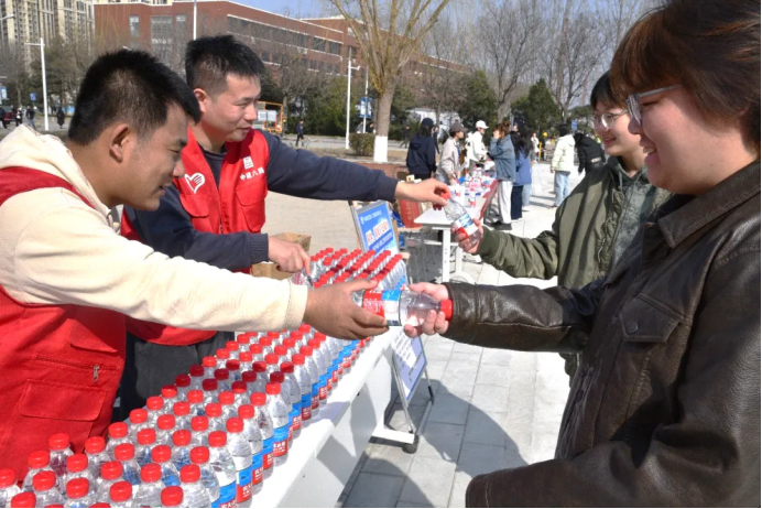 “同学,一路辛苦,喝口水吧。”简单的问候为春日的归途增添了几分暖意。这是中建八局首都师范大学项目团队的“十典九章”志愿者们自发组织的爱心服务活动。考虑到返校首日行李多、气温渐升,团队在食堂门口设立了临时服务点,半天时间累计发放饮用水1000余瓶,协助搬运重物近百件。不少学生接过水时露出惊喜的笑容,有的还回头挥手致意。这温馨的一幕,成为返校日里的一个暖心注脚。
