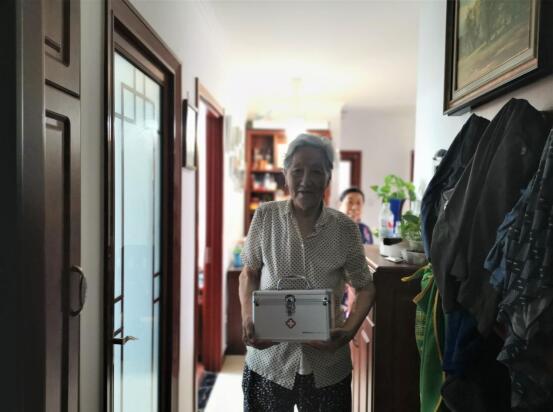 此次发放的爱心药箱不仅可以作为日常收纳工具,帮助老人们将常用药品分门别类,还配备了防暑药品以及居家护理药品,满足高龄老人基础的个人护理需求。老人们对精美的药箱爱不释手,家住通泰文园的陈奶奶在收到药箱时,引来了一旁邻居们的围观,“这药箱真精致”“出门拎着挺方便的”。陈奶奶告诉记者:“以前我的药都是用纸盒子装的,经常忘记放在哪里。这下终于有药箱了!”