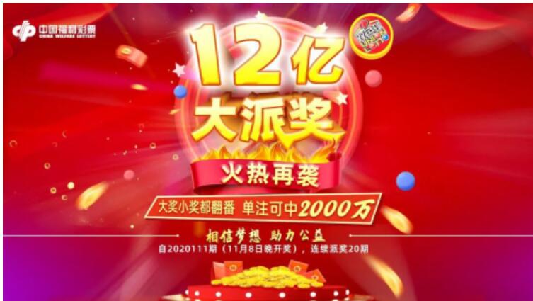 为感谢广大购彩者对福利彩票双色球游戏的支持,中国福利彩票发行管理中心决定对双色球游戏开展派奖活动。本次活动自双色球第2020111期(开奖日期为2020年11月8日,星期日)开始,连续派奖20期,派奖总金额12亿元。此次派奖活动将针对双色球一等奖和六等奖同时开展。其中,一等奖特别奖派送6亿元,一等奖普惠奖派送1亿元,六等奖翻番奖派送5亿元。