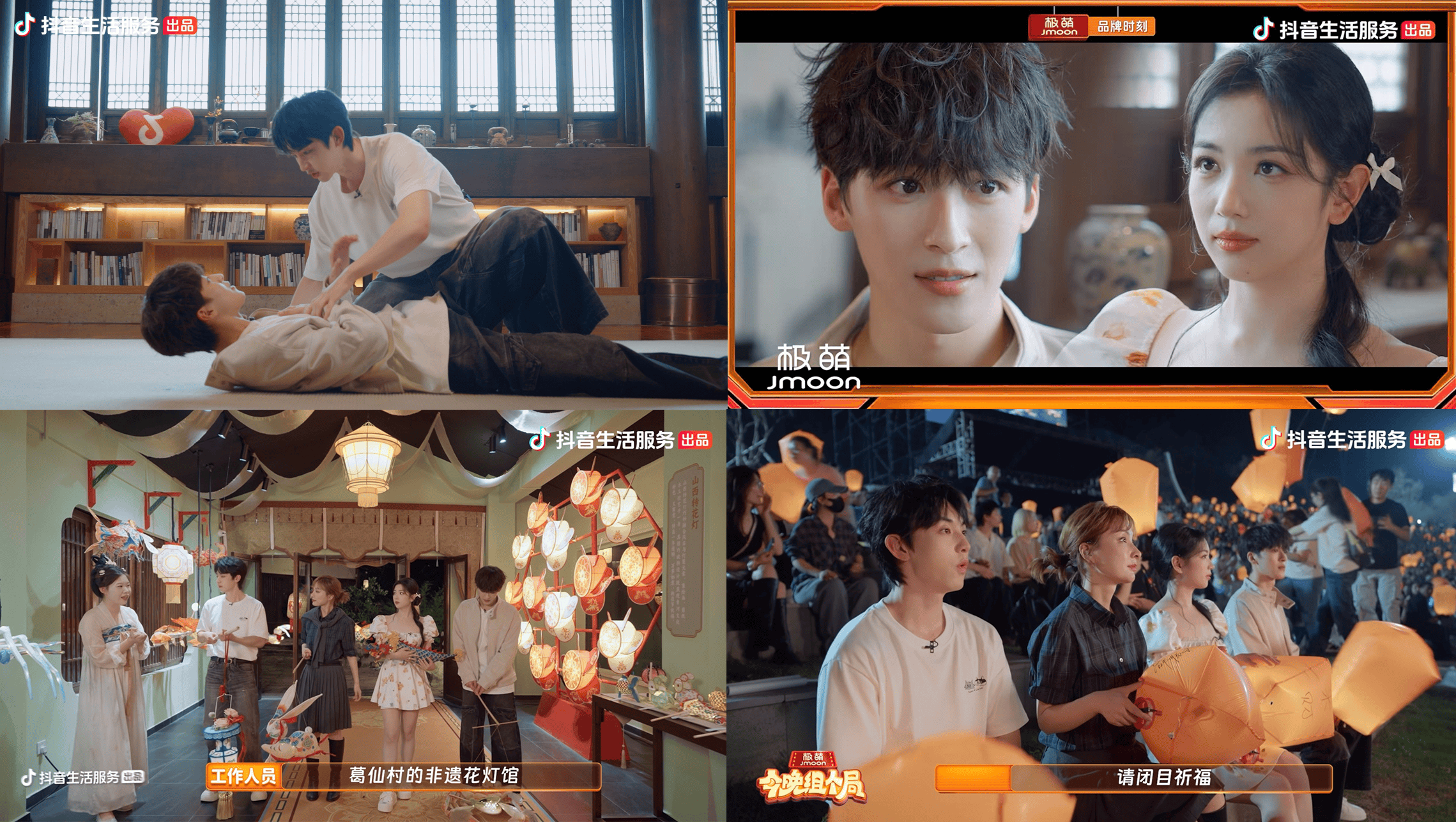 上饶的葛仙村则被浪漫笼罩。千灯会的璀璨灯火下,组局成员们在亭台楼阁间演绎或是唯美或是轻松的短剧。他们提灯夜游、吟诗作对,将千灯美景与情感故事巧妙融合,让这个网红打卡地展现出更深厚的文化魅力。
